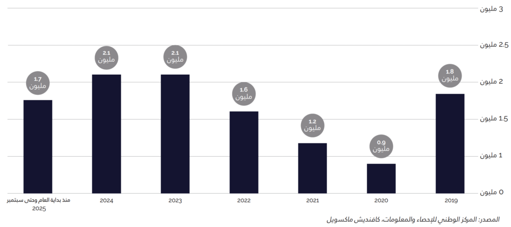 إجمالي عدد الضيوف في الفنادق من 3 إلى 5 نجوم (بالملايين)