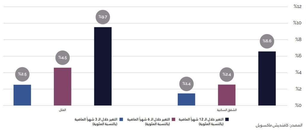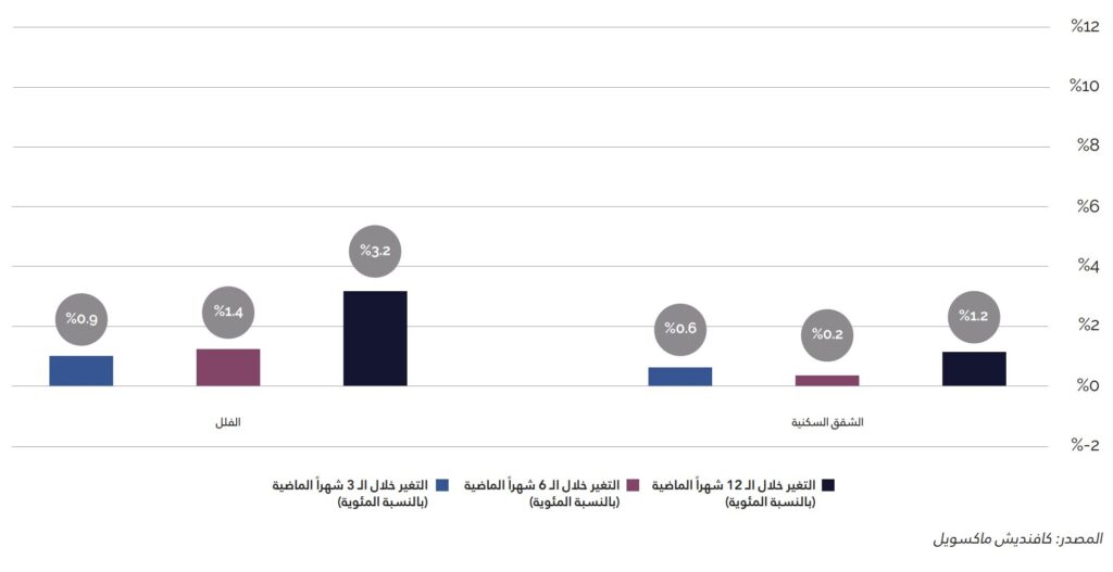 - ﺳﻌﺮ ﺑﻴﻊ اﻟﺸﻘﺔ: +6.6% على أساس سنوي