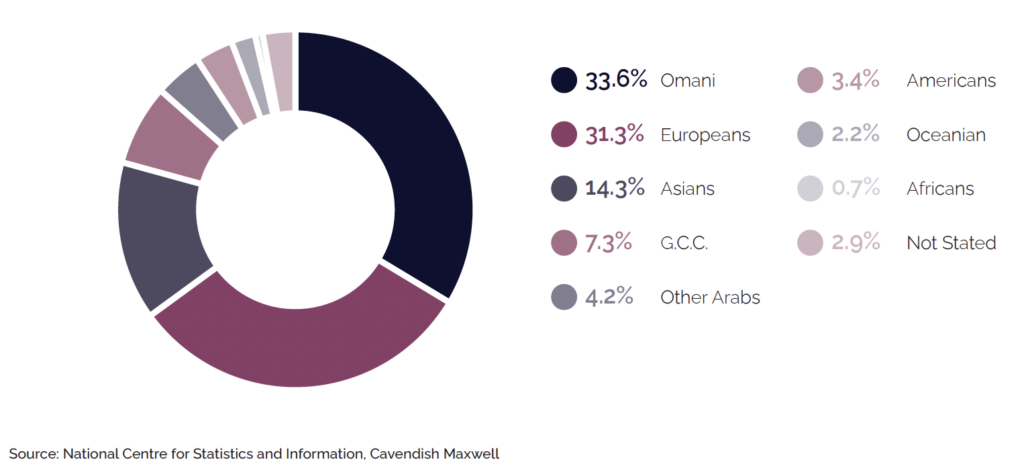 Omani nationals remained the backbone of the hospitality sector, holding the largest share of guests. Europeans and Asians also ranked among the top three nationality groups in 3-5 star hotels, with European visitors up 20.1% compared to the same period last year. Although Oceanians accounted for a smaller share, they posted the highest growth rate among all nationalities.