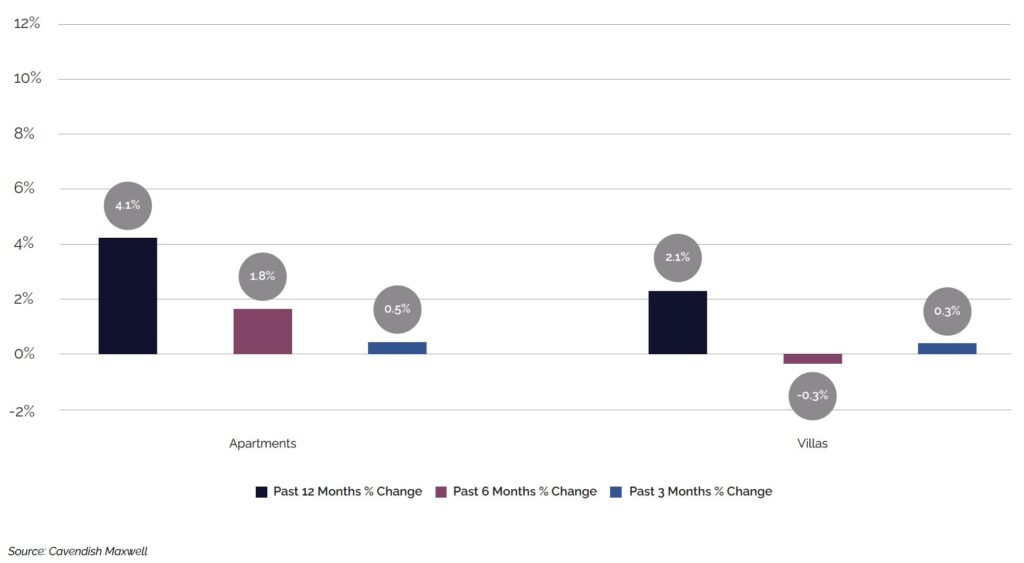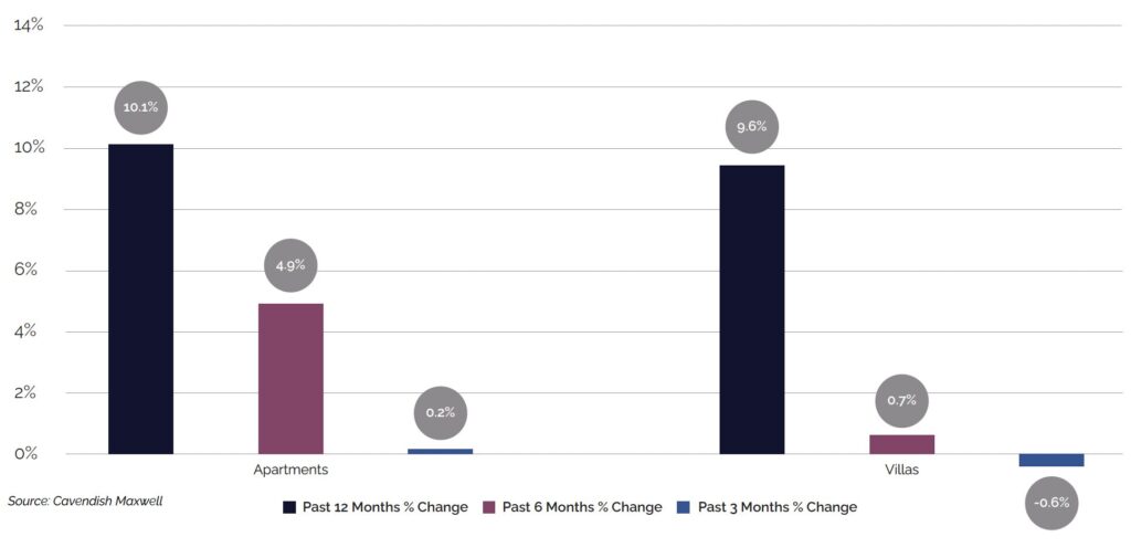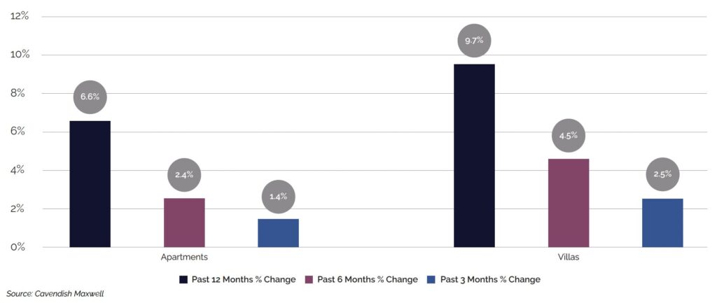 Rental rates followed a similar trajectory, with apartment and villa rents rising 10.1% and 9.6% year-on-year respectively, reflecting strong demand across the residential sector. In response to mounting affordability concerns, the Government introduced a five-year rental freeze across Riyadh in late September 2025, with early signs of moderation emerging in the final quarter of the year.