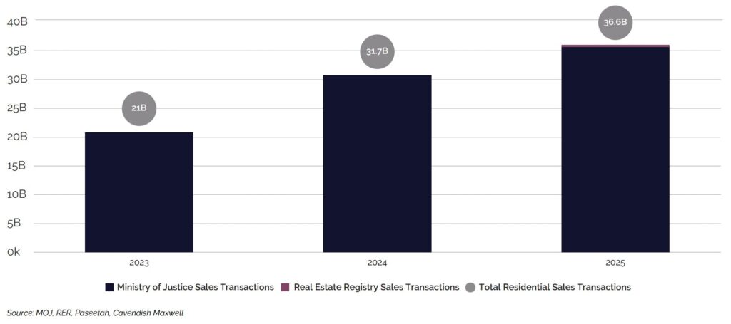 In terms of sales value, Jeddah recorded approximately SAR 36.6 billion in residential transactions in 2025, reflecting a 15.4% increase from 2024, with average transaction prices reaching SAR 1.2 million.