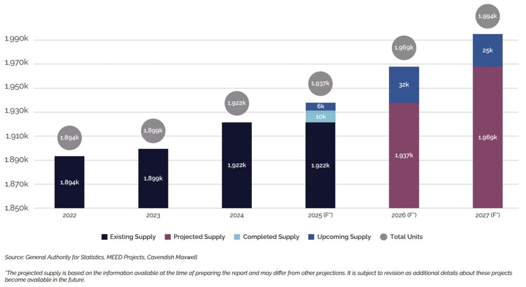 On the supply side, Riyadh delivered approximately 10,000 residential units in the first nine months of 2025, with a further 6,000 expected by year end. Jeddah added roughly 3,000 units, with 2,000 more anticipated by year end, while Dammam’s supply grew modestly by 500 units with 1,300 units expected in Q4 2025.