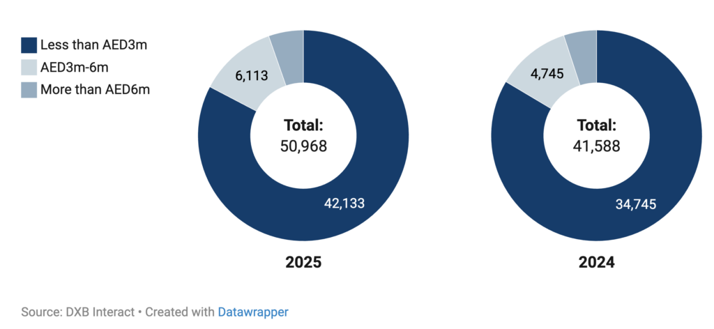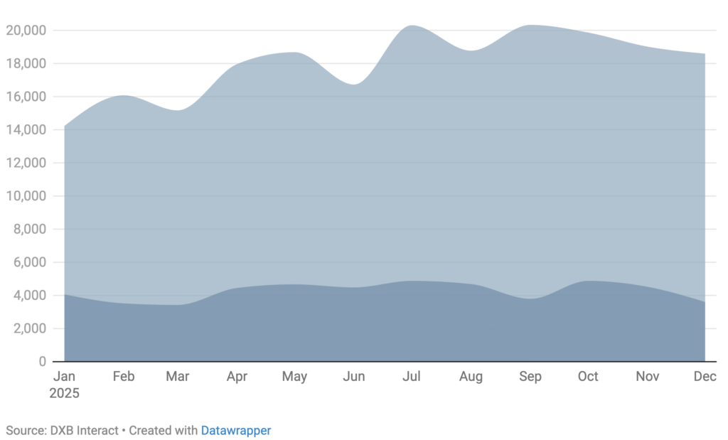Mortgage sales totalled AED179.3 billion in 2025, down 4 percent year on year, even as the number of mortgage transactions rose by 23 percent to about 51,000 deals.